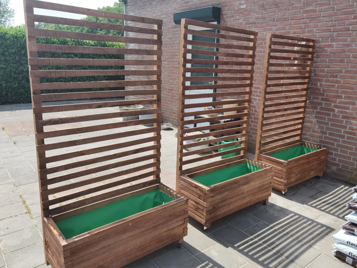 Grote bloembakken, gemaakt van vierkante hout 40 mm x 40 mm, zeer stevig, genageld, geïmpregneerd en geschilderd.