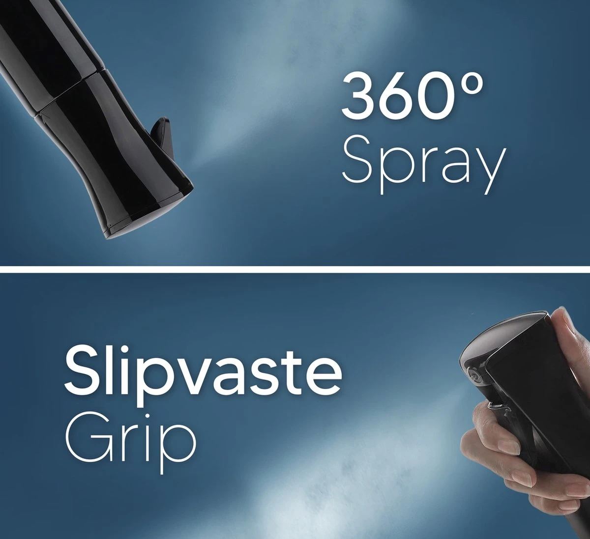 - 360° spray – De innovatie techniek in de spray maakt het mogelijk onderste boven te sprayen. Zo kun jij vanuit alle hoeken de spray gebruiken.