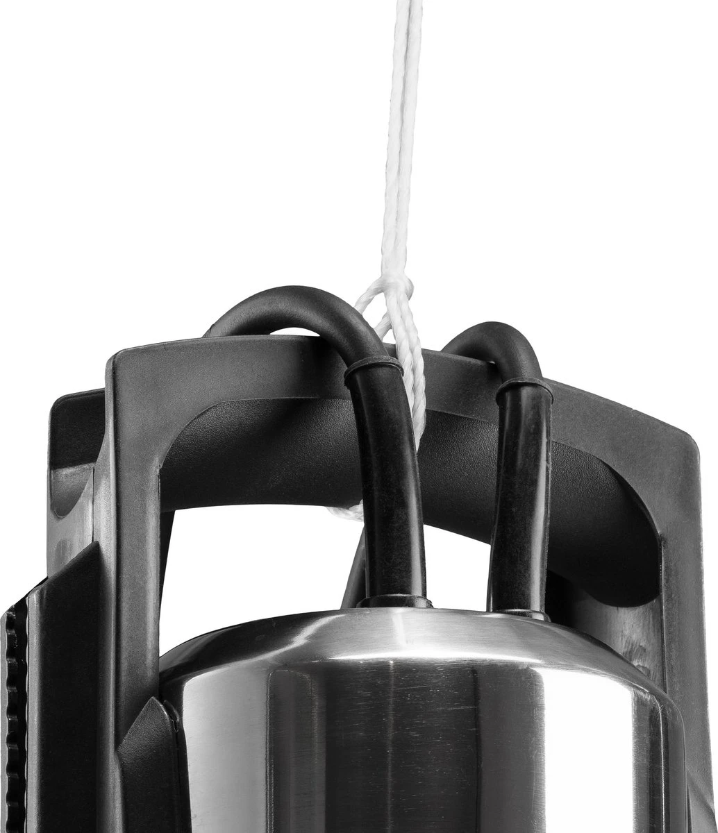 De met een waterdichte rvs behuizing uitgevoerde vuilwater-dompelpomp, pompt tot 15.000 liter water per uur. Met een dompeldiepte van maar liefst 7 meter is de TWP 9000 ES aan te bevelen voor waterafname uit nagenoeg alle waterreservoirs. Reeds vanaf een waterniveau van 50 mm begint de dompelpomp volledig automatisch met pompen, tot de maximale zuighoogte van 40 mm is bereikt. De pomp is ook te gebruiken met behulp van de handmatig instelbare vlotter. De positie van de vlotter is eenvoudig aan te passen met behulp van de houder aan de behuizing. Door de vlotter volledig te fixeren, pompt de TWP 9000 ES continu.